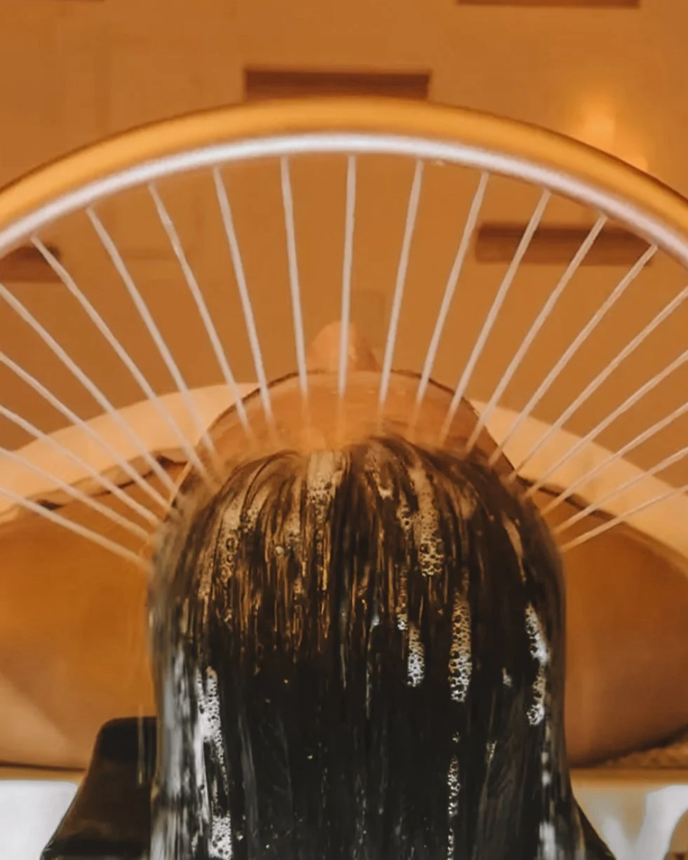 Our most indulgent head spa begins with scalp detox cleanse, exfoliation, and soothing scalp massage. Hair mask is steamed under the halo stream while you receive a custom facial with hot towels, hot stones, and neck & shoulder . Finished with tailored skin & scalp products. Heated eye mask included to aid in absolute relaxation.